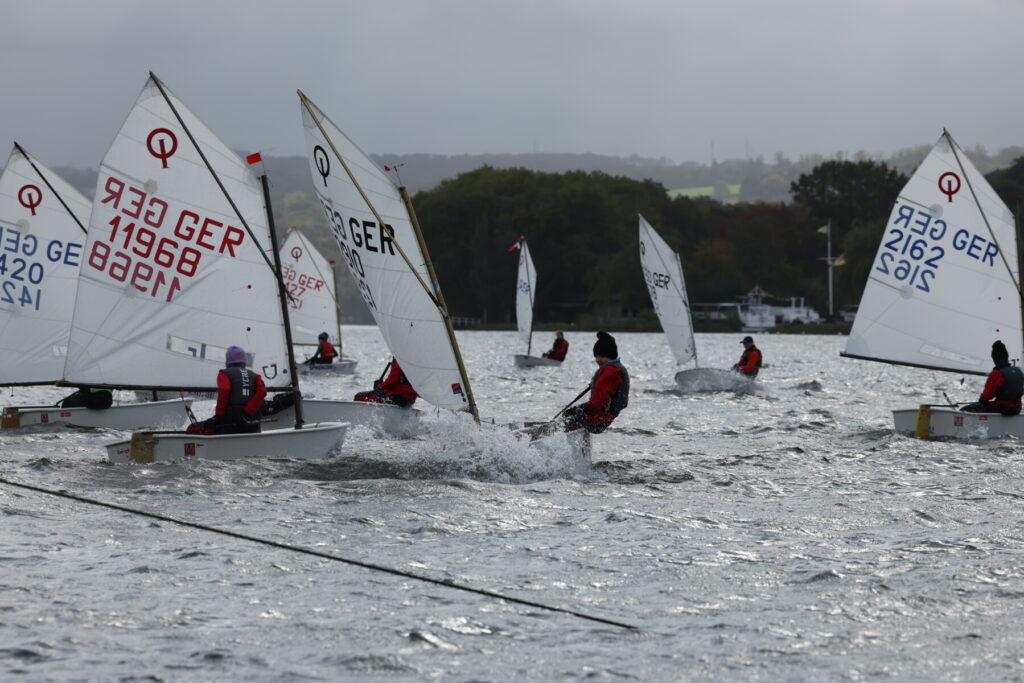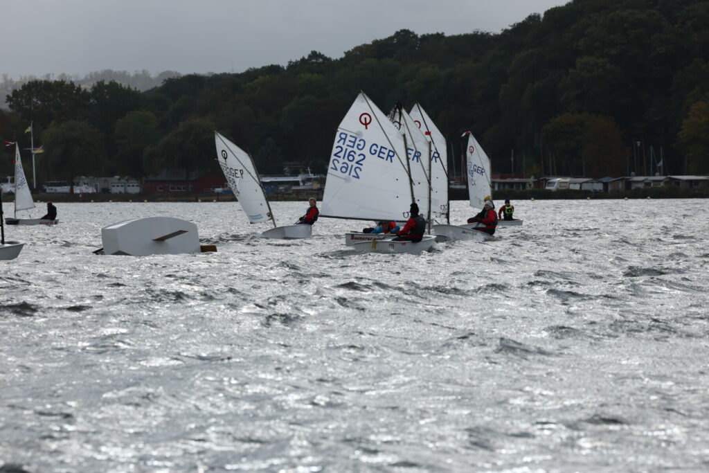 Regatta-Wochenende auf dem Baldeneysee/Essen beim YCRE. Am Start beim Ruhrland Cup mit Vortraining und Regatta ( 3. bis 5. Oktober 2025) 15 Opti B- und 12 Opti C-Segler.